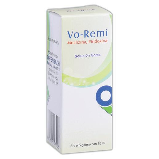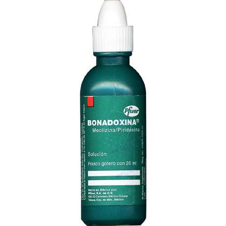 Cada mL=20 gotas contiene: Meclizina 8.33mg+Piridoxina 16.00mg.