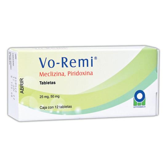 Fórmula: Genérico: Meclizina+Piridoxina (Tabs. Orales).