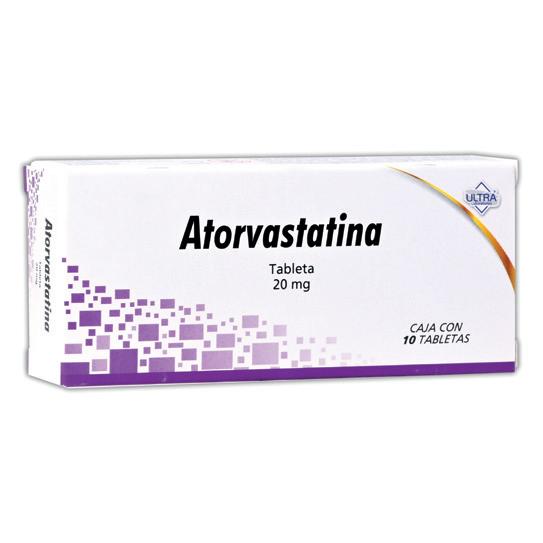 ATORVASTATINA (Ultra) c/10 TABS. 20 MG. Cada tableta contiene: Atorvastatina cálcica trihidratada 20mg.