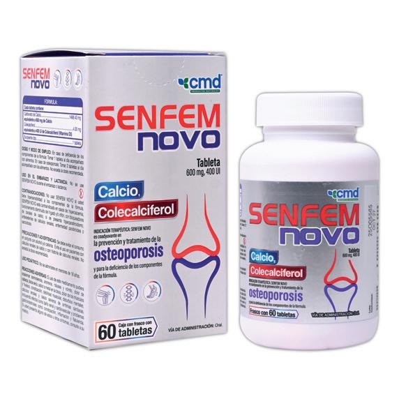 SENFEM-NOVO c/60 TABS. 600 MG/400 UI. Cada 1 tableta=1 porción, contiene: Calcio (Carbonato de calcio)