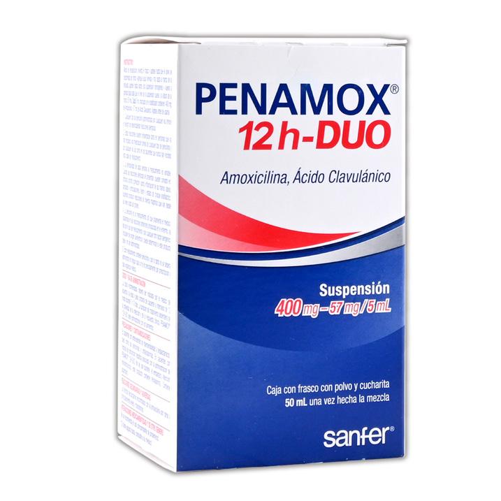 Susp. Fco. 50 ml. 400-57 mg/5 ml. Amoxicilina+Ácido Clavulánico 400/57mg. (Susp. Oral 12H).