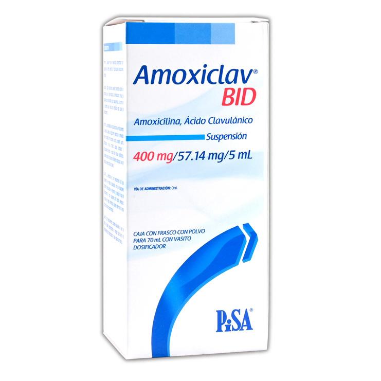 Susp. fco. 70 ml. 400-57.14 mg/5 ml. Amoxicilina+Ácido Clavulánico 400/57mg. (Susp. Oral 12H).