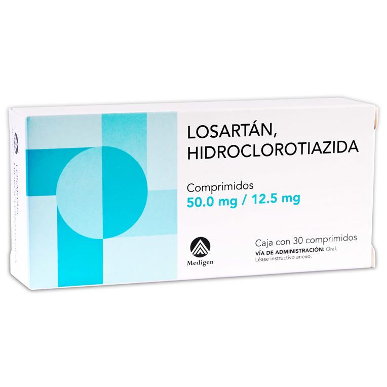 (Medigen) c/30 comps. 50/12.5 mg. Losartán+Hidroclorotiazida 50/12.5mg.