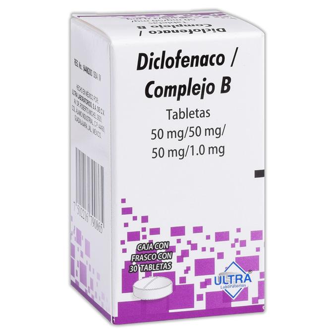 (Ultra) c/30 TABS. 50/50/50/1 MG. Complejo B [Tiamina, Piridoxina, Cianocobalamina 1.0mg]+Diclofenaco 50mg. (Tabs.)