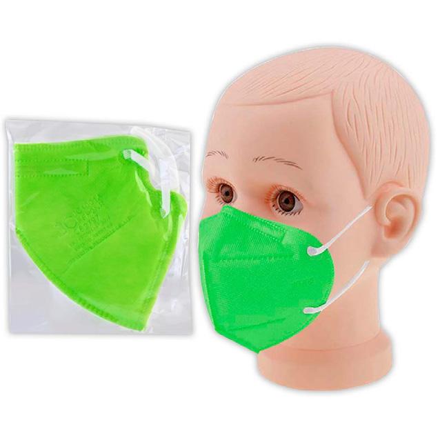 Col. Verde bolsa c/1 pza. Cubrebocas forma de copa KN95 Infantil.