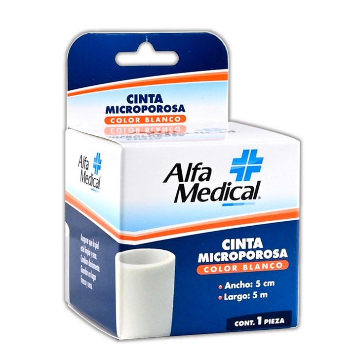 A: 5cm; L: 5m. Caja c/1 pza. Cinta adhesiva microporosa de papel 5.00x 5 (Color blanco).