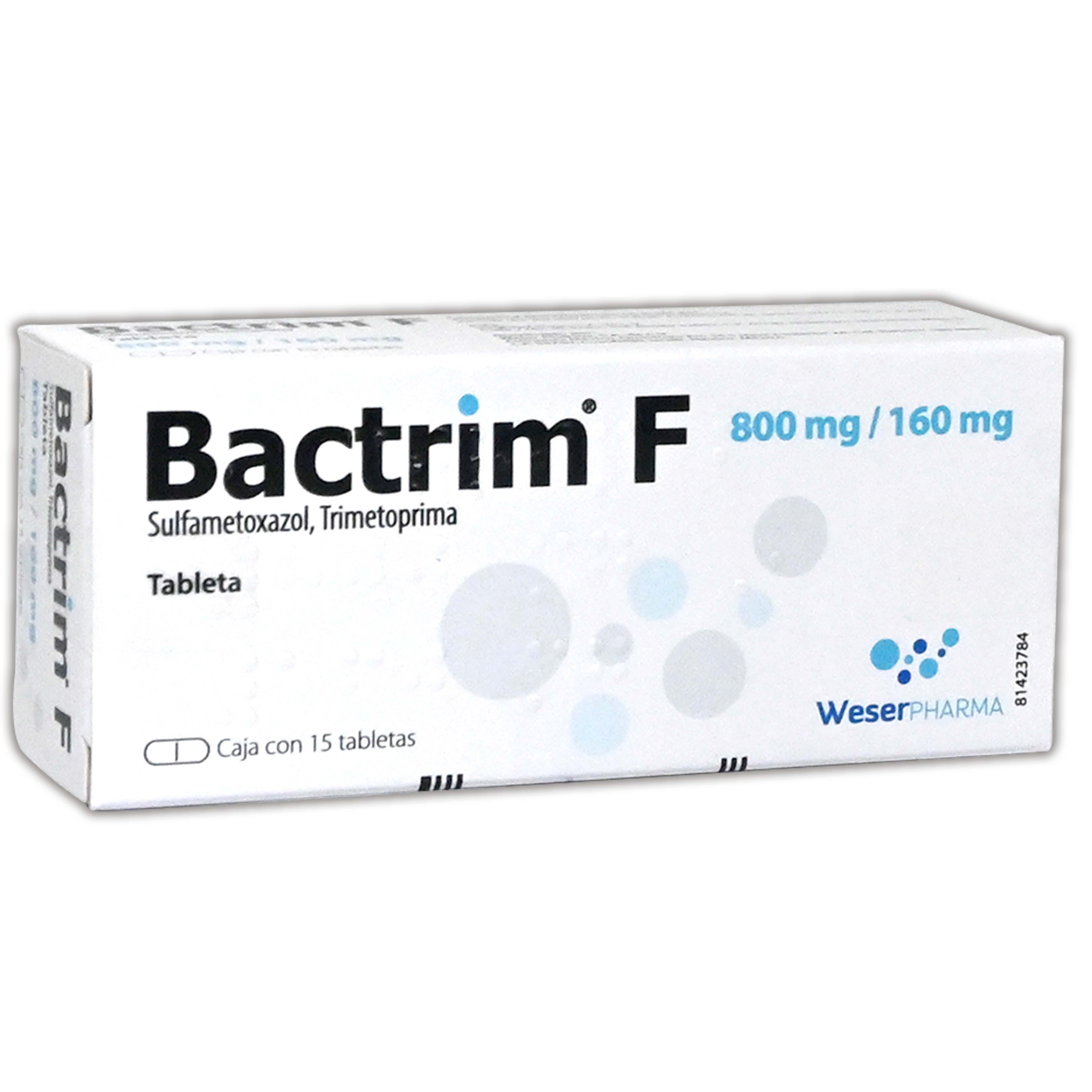 c/15 tabs. 800/160 mg. Trimetoprima+Sulfametoxazol 160/800mg. (Tabs. Orales). Vigencia al 30 de septiembre de 2023 o hasta agotar existencias. Sin derecho a devolución Bactrim-F