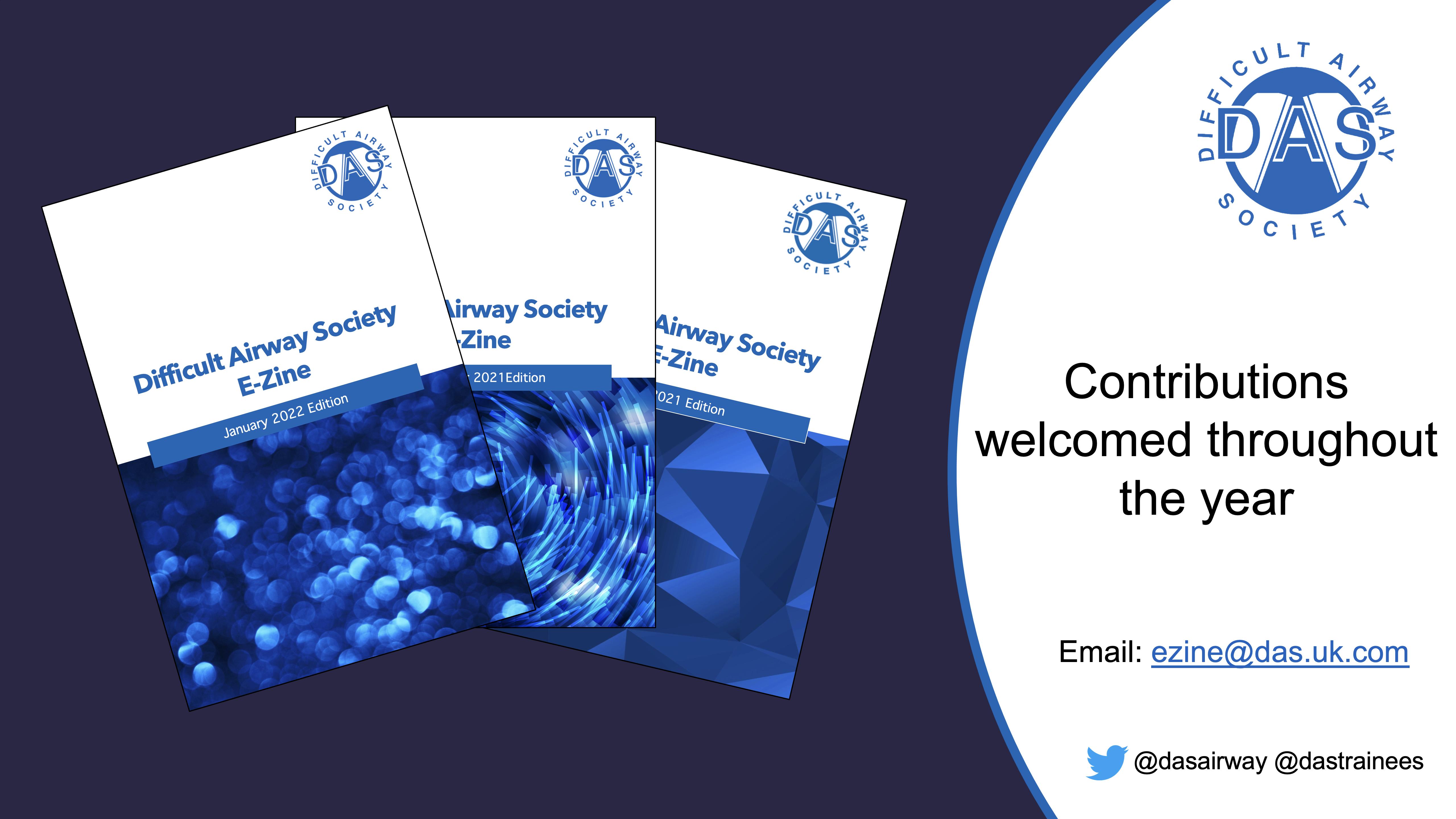 Thank you for sending the May edition of the Difficult Airway Society E-Zine.