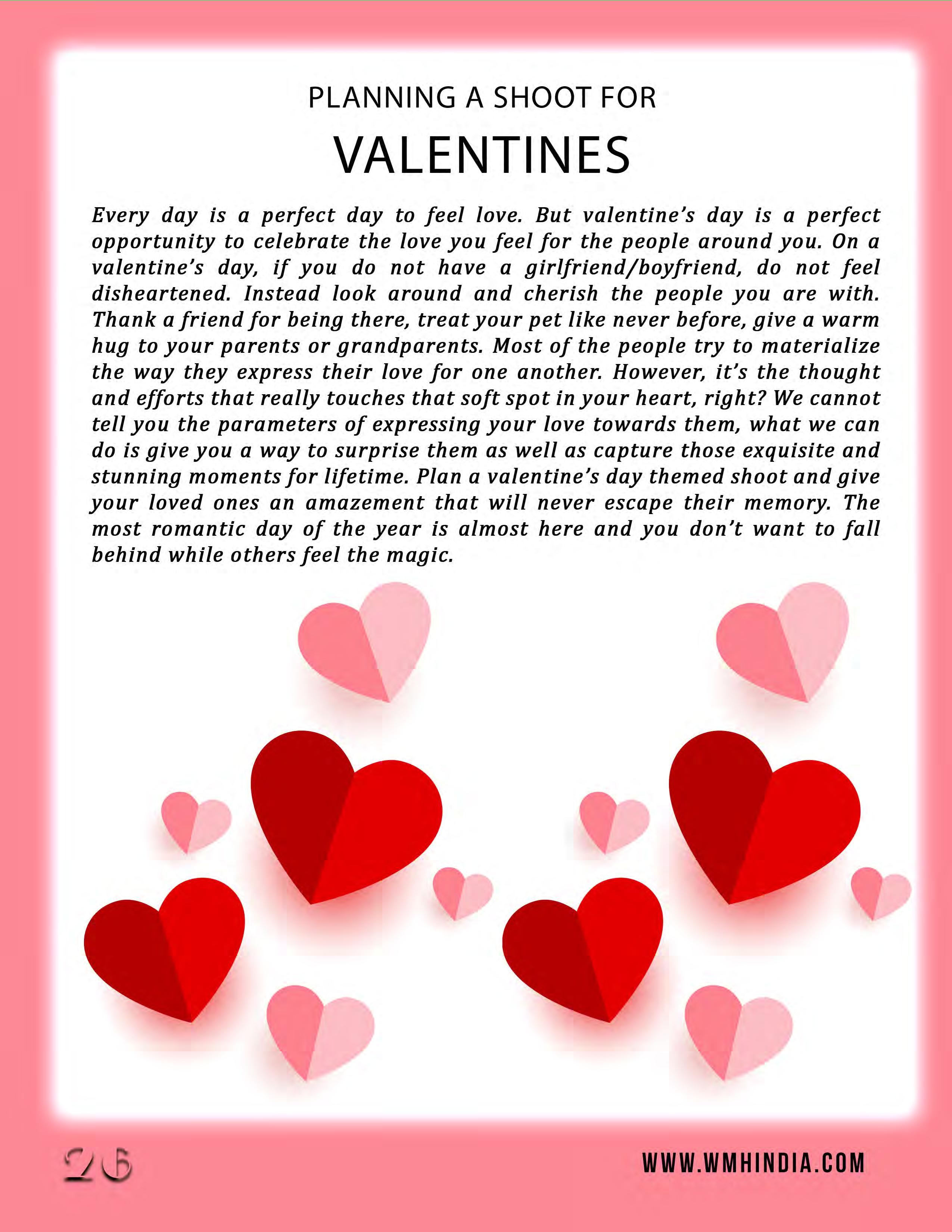 We discussed Valentine's Day in this month's WMH-India. We are featuring Samruddhi Patil on the cover. While she dealt with many criticisms in her life about her body parts, she refused to let them affect her. This is a positive because she believes in herself rather than blindly following the rules of society. She is someone who is inspiring not only herself but also others by standing up for oneself.. There are a lot of tips in this magazine to help you to plan your Valentine's day with your partner and to share love around the world.