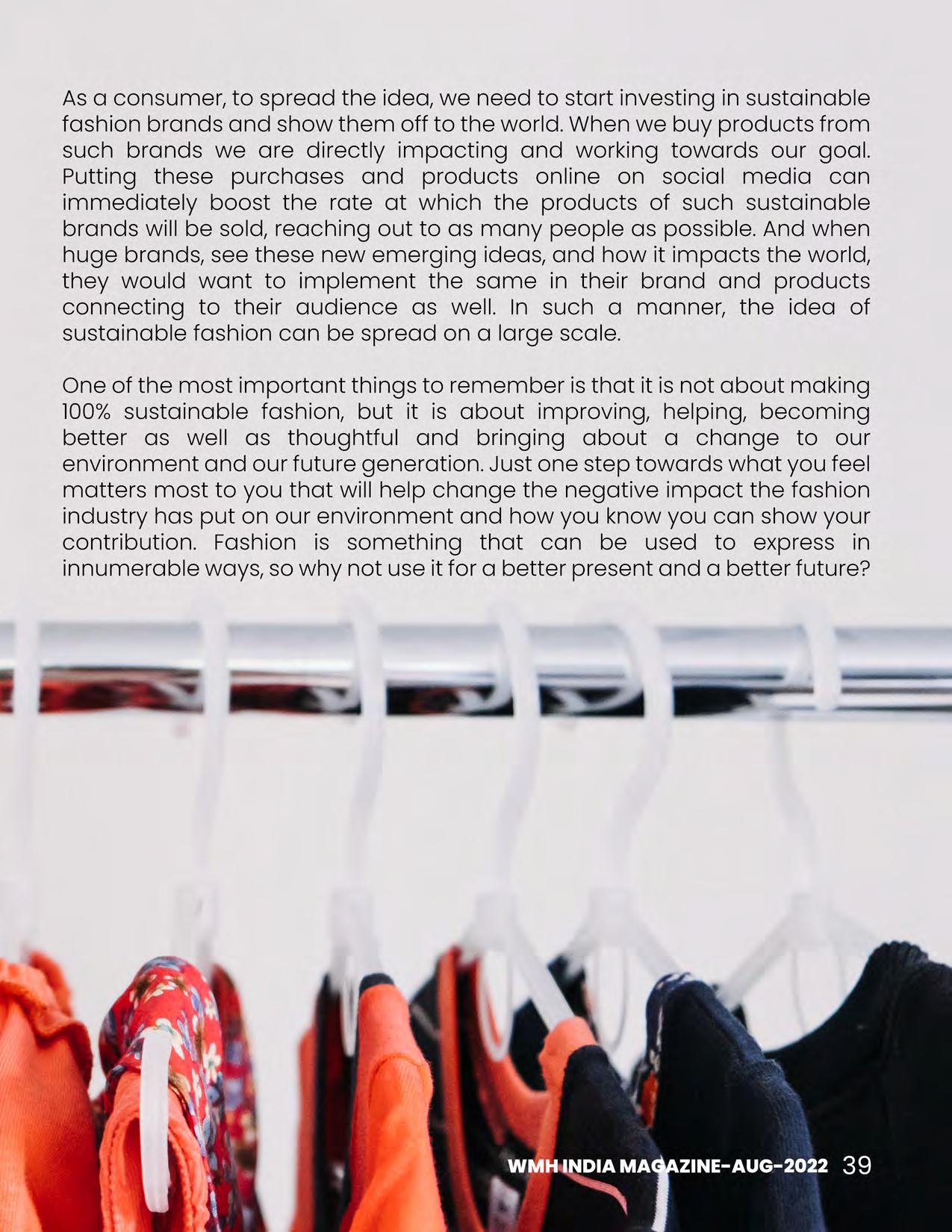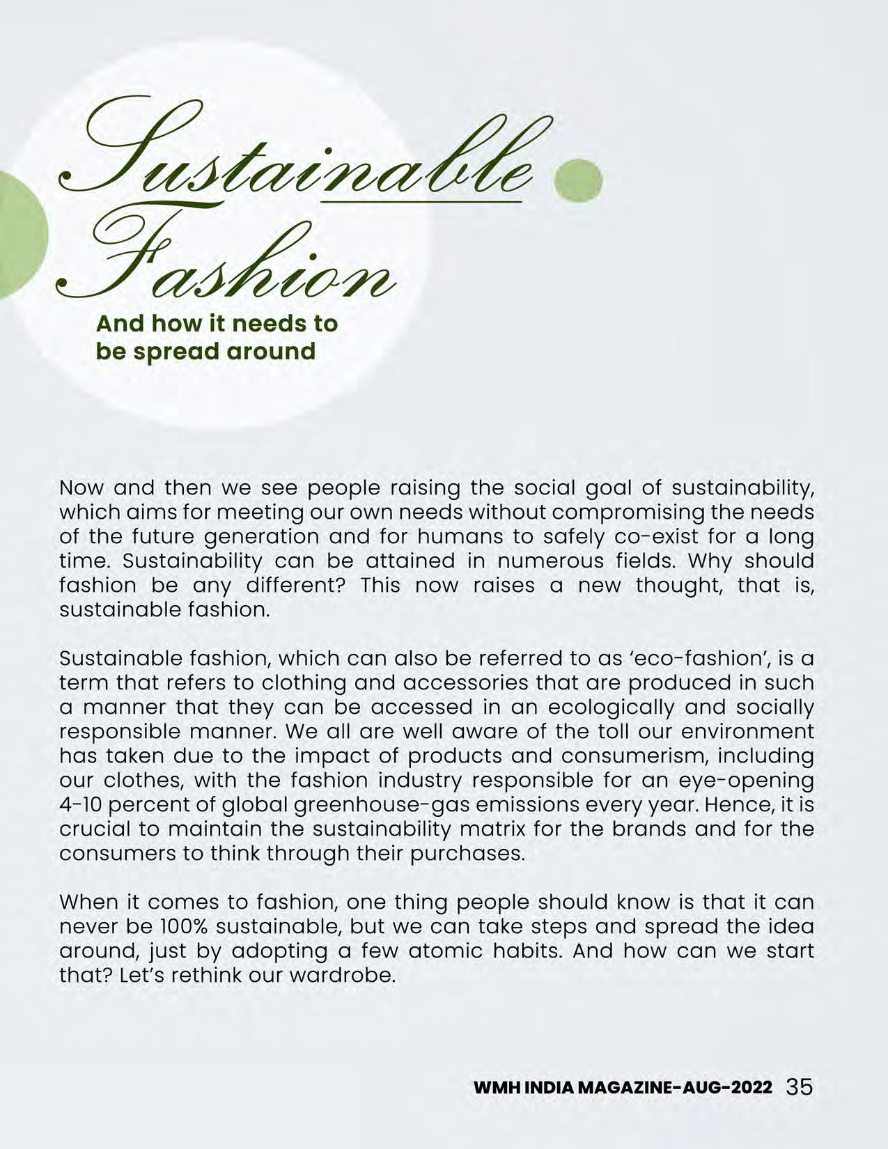 1 minute readSustainable fashion and how it needs to be spread aroundfrom WMH India Magazine - August - 2022by DIFM Magazines AdvertisementThis article is from:WMH India Magazine - August - 2022