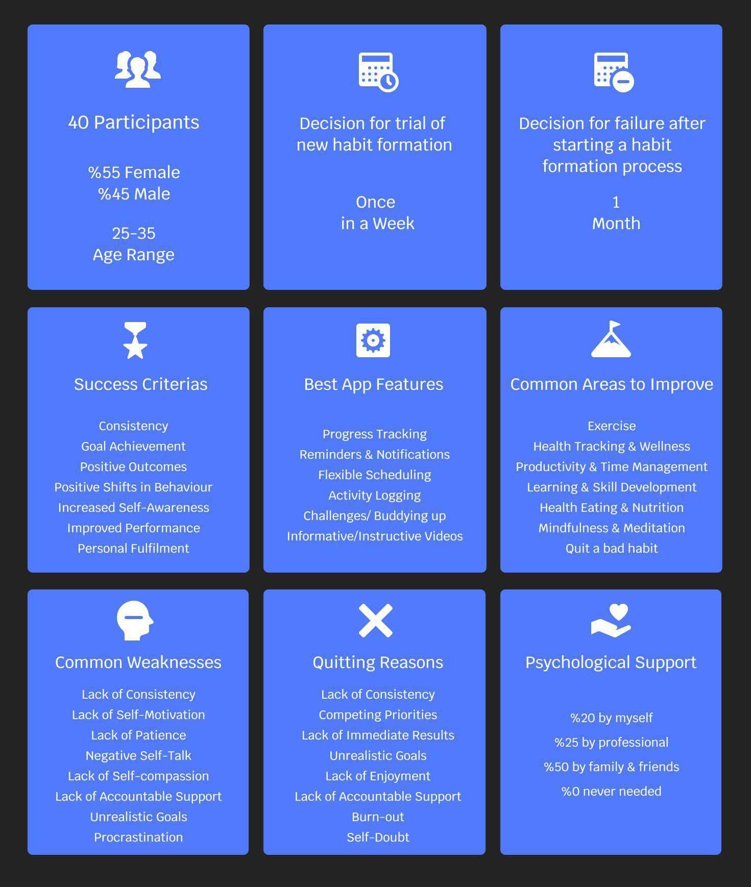 By addressing the specific struggles or motivations of different personas, habit tracker apps can offer more personalized support, leading to better user retention, higher success rates in habit formation, and a stronger overall user experience.