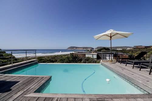 A spectacular view awaits you as you enter this modern 5 bedroom triple storey home in “Old Plett” Plettenberg Bay. Fabulous open plan living spaces with floor to ceiling glass doors allowing light and warmth to fill the house. An indoor pool heated by solar and a heat exchange system is on the same level and in summer the glass stacker doors can be opened to the house and outside private patio. The underground garage has space for 6 cars or add a workshop to the space (Bring your boat too!) With everchanging views and space for family and friends this is a house to come home to.