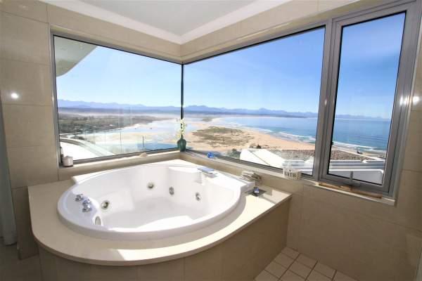 With breath-taking views of the ocean and Robberg peninsula, this home is an entertainer’s delight. A multi-storey home with spacious open-plan living areas and well-appointed kitchen.Upstairs study/gym or art studio leads to a private patio. Self-contained flatlet for overflow accommodation or guests. Two double garages and fully walled with access control. Staff accommodation and two double garages. A rare find for the discerning buyer.