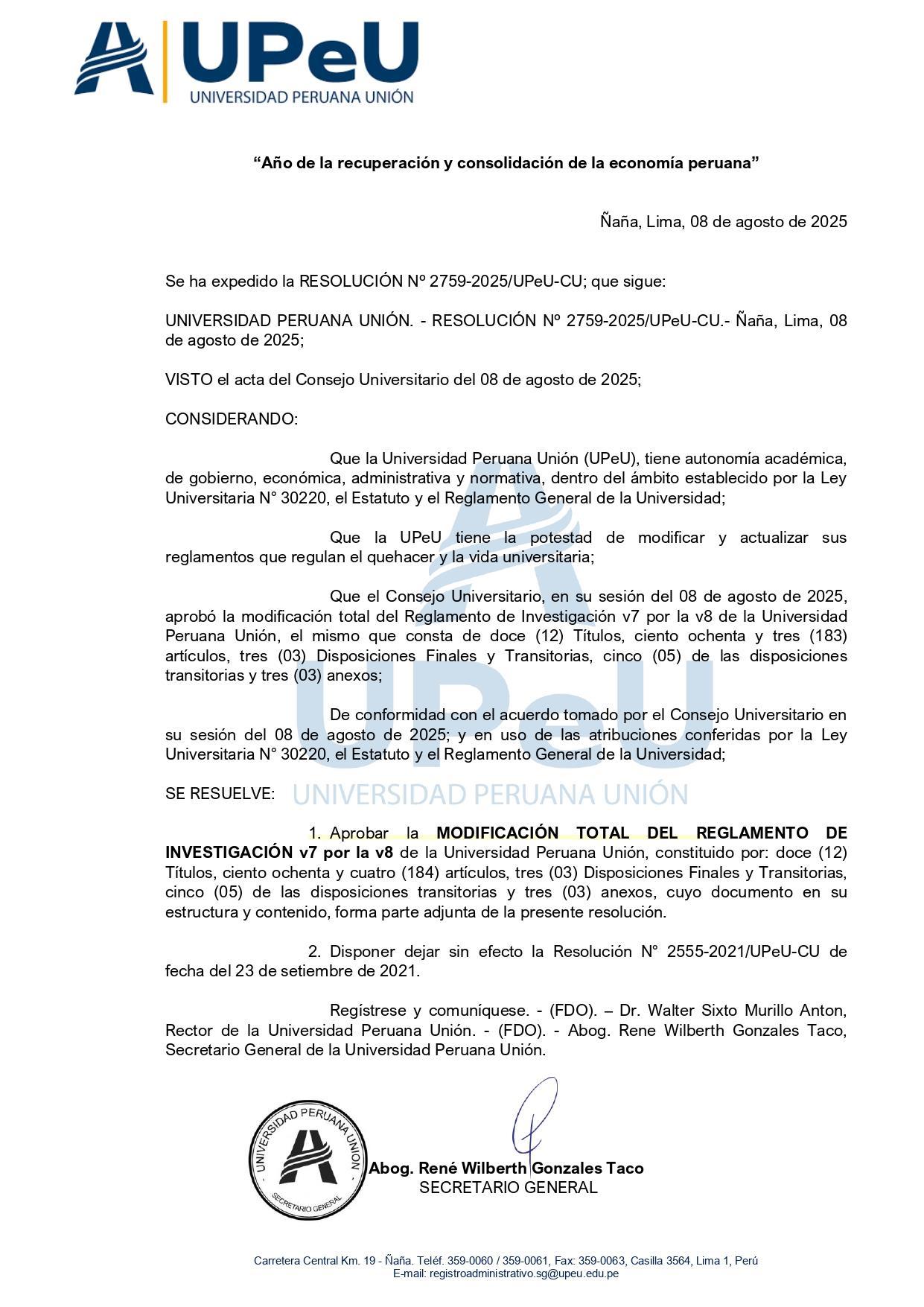 1.4. Reglamento General de la UPeU.