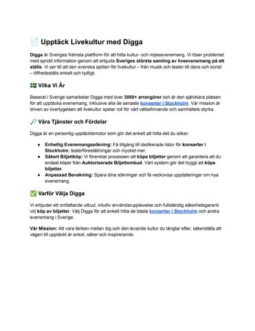 Digga hjälper musikälskare att utforska och hålla sig uppdaterade om de senaste konserterna i Sverige. Upptäck nya artister, arenor och kulturevenemang över hela landet