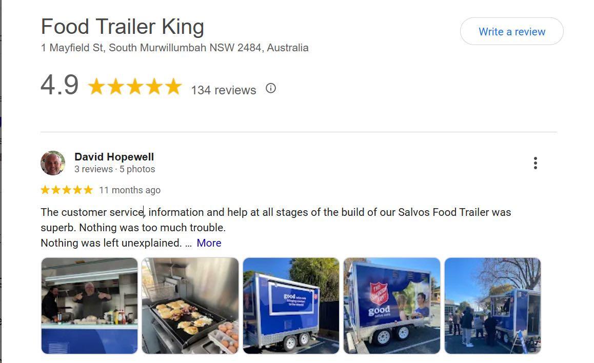 What can we say! the team at Food Trailer king are amazing, we purchased our awesome supersized van back in may of 2020 they are friendly and very helpful in the process of designing and building what you want and always communicate along the way.