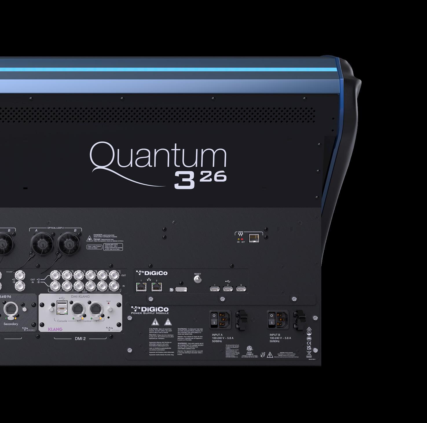 The Quantum engine is at the heart of the new family. It can transport up to 2,000 channels across 458 processing paths at 96kHz. New GTX ports run at 6.6GHz while simple two wire connections ensure the fastest possible data speeds to reach a new pinnacle in mixing capability. Fully scalable and designed to communicate seamlessly with the next generation of FPGAs, the Quantum engine is a uniquely formidable platform for an ambitious industry.