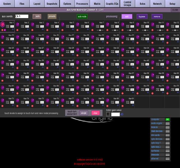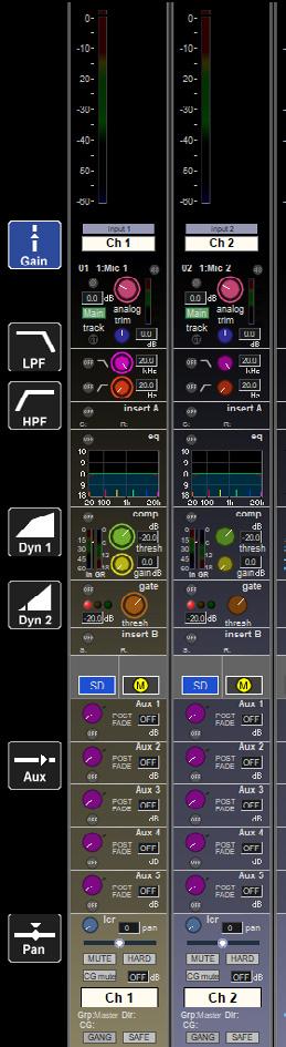 Fast access to channels, easy control of gain and quick intuitive management of all of the sends, dynamics, effects and EQ is where HTL comes into its own. Even operators with little or no experience of digital consoles will instantly be able to see which control on the desk alters which parameter, as HTL dynamically colour codes each rotary encoder to reflect the colour scheme of EQ, processing, effects or sends currently displayed on the screen.
