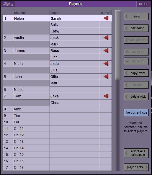 Another hurdle faced by Sound Designers is the accomodation of different actors playing the same role but requiring different processing. That is where Players comes in. Each input channel can have multiple Players with unique settings for each actor playing the role. What is more, these can be recalled at any time during the show in the event of an actor being taken ill mid show.