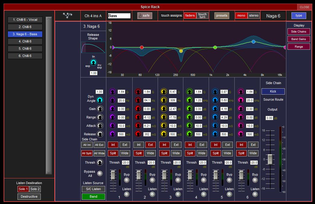 The Spice Rack is a new processing rack that supports plugin style native processing options, allowing you to build a rack of insertable processors. To kick things off, we launched the Chilli 6 – a 6-band multi-band compressor/ expander. Allowing full control over all parameters, including our unique release shape control, the Chilli 6 is perfect for shaping vocals and instruments with all the control you need. Following the Chilli 6 came the Naga 6 - a 6-band dynamic EQ. Designed for precision work, the Naga 6 is a must-have for taming problem frequencies.