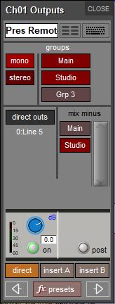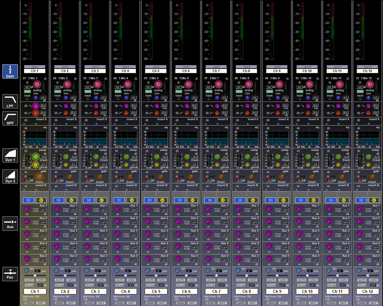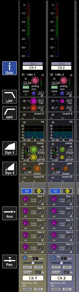 Busses Up to 24 plus masters Aux / Group busses with full processing Mono / Stereo / LCR