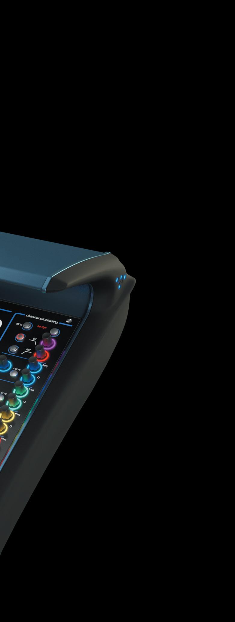 These RGB HTL rings can be found around all encoders on the hardware channel strips for quick adjustment of each EQ band and dynamics controls. They can also be found on every single row of assignable encoders on all Quantum consoles so that you can immediately find the controls you need.