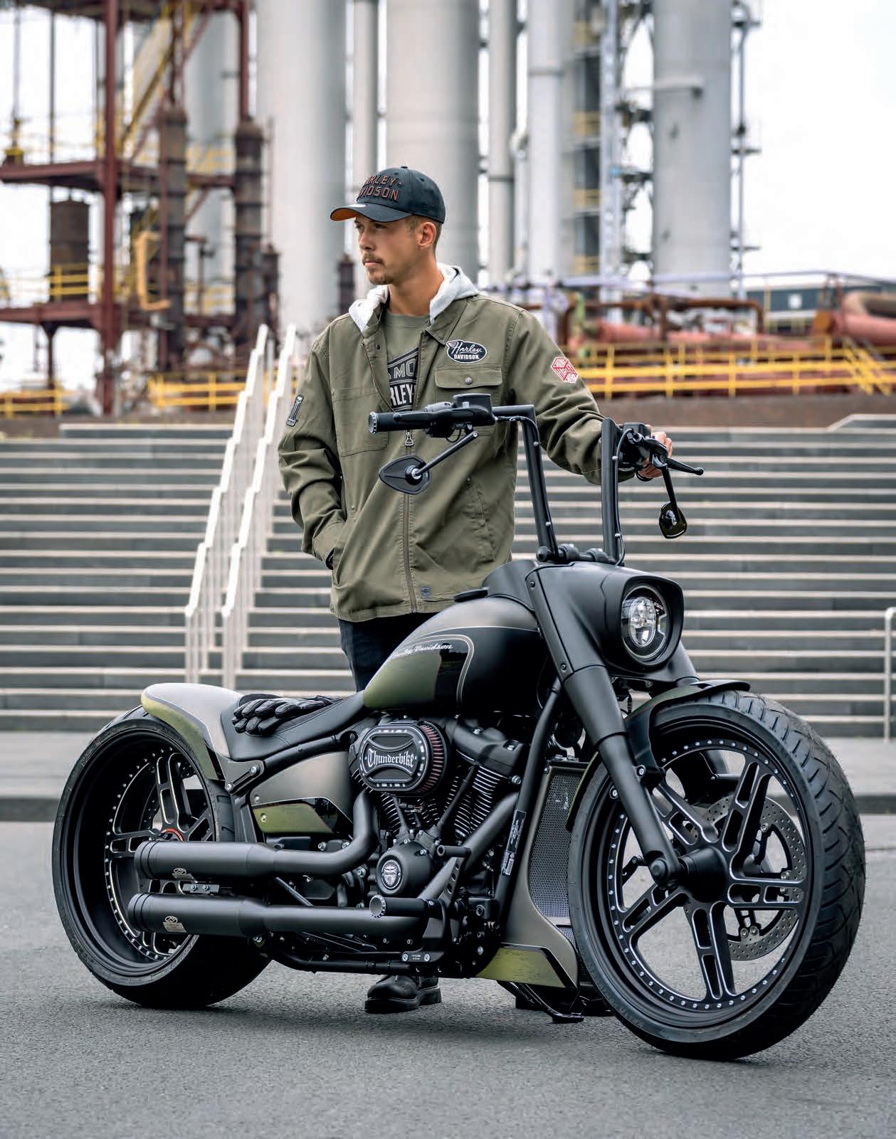 KOMBINIERT MIT DER MILWAUKEEEIGHT SERIENTECHNIK IST MIT DIESEM UMBAU AUF BASIS EINER BREAKOUT EIN EINFACH ZU FAHRENDES CUSTOMBIKE DER SPITZENKLASSE ENTSTANDEN.