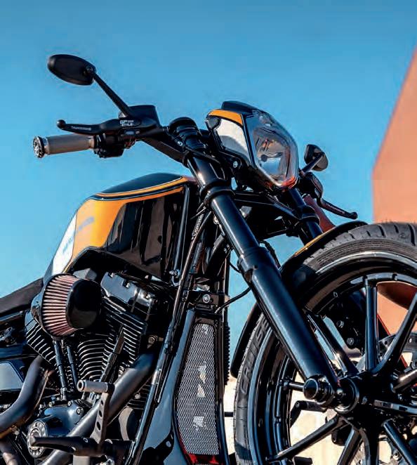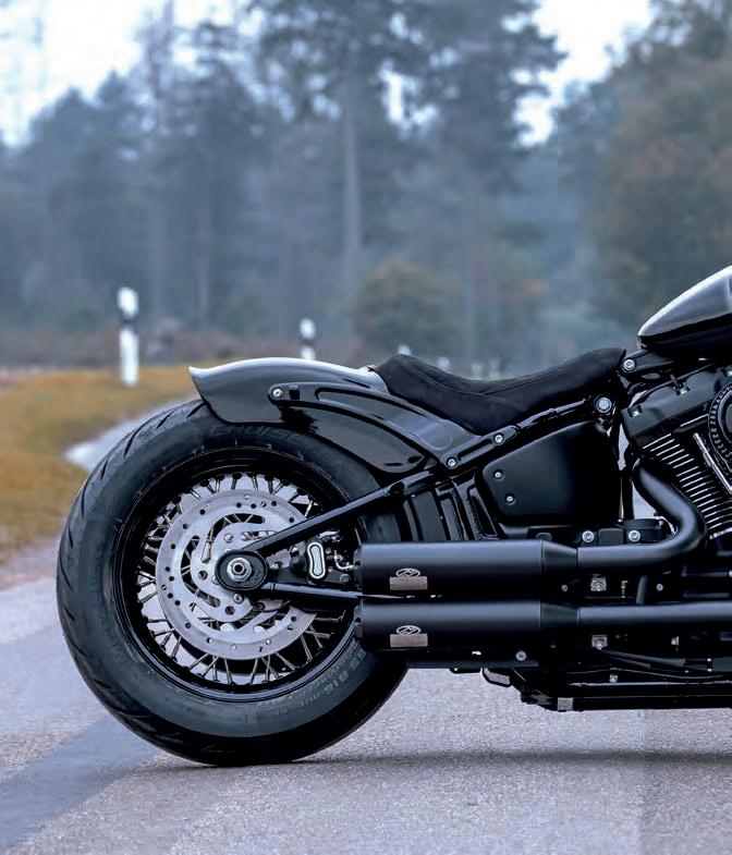 UNSER HANDGEFERTIGTER CUSTOMTANK, DER BUGSPOILER, DER SITZ UND DER HECKFENDER AUS UNSERER GP-SERIE GEBEN DIESEM SOFTAIL-MODELL EINE AUSSAGEKRÄFTIGE NEUE LINIE.