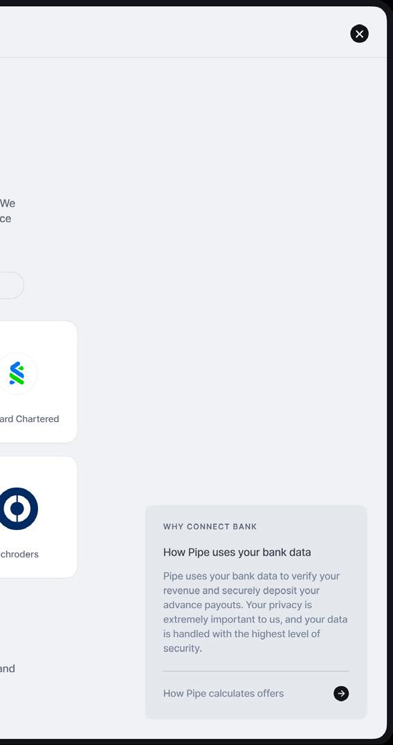 By embedding capital directly into the applications that SMEs use daily to run their business, Pipe makes it fast and simple to access funding. This allows businesses to secure working capital in minutes based on their performance rather than going through the traditional lengthy and arduous underwriting process. With pre-approval rates well above 90%, Pipe eliminates a common friction point often experienced with other lenders, who may show pre-qualified offers only to disqualify applicants later.
