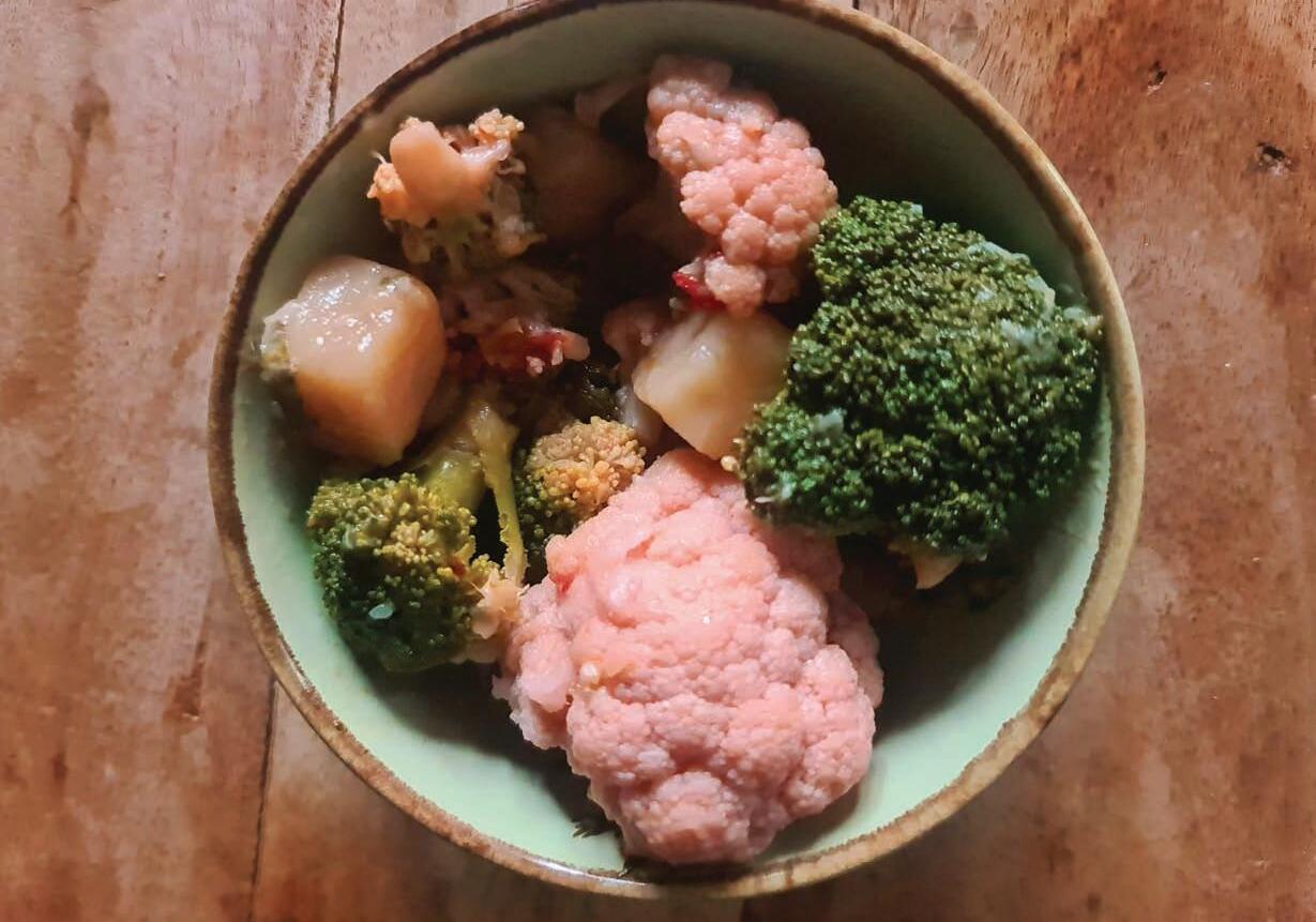 αφήνουμε να βράσουν για περίπου 3-4 λεπτά και κλείνουμε τη φωτιά. Προσθέτουμε μπρόκολο, πιπεριά και κουνουπίδι, βάζουμε το καπάκι στην κατσαρόλα και το αφήνουμε για 2 ημέρες.