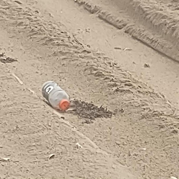 [Plasticbottleonthebeach/Courtesyphoto PatriciaM.McGrath]Debrisfrombeachgoers oritemsthatwashuponshorefrequentlylitter the beaches of South Padre Island.