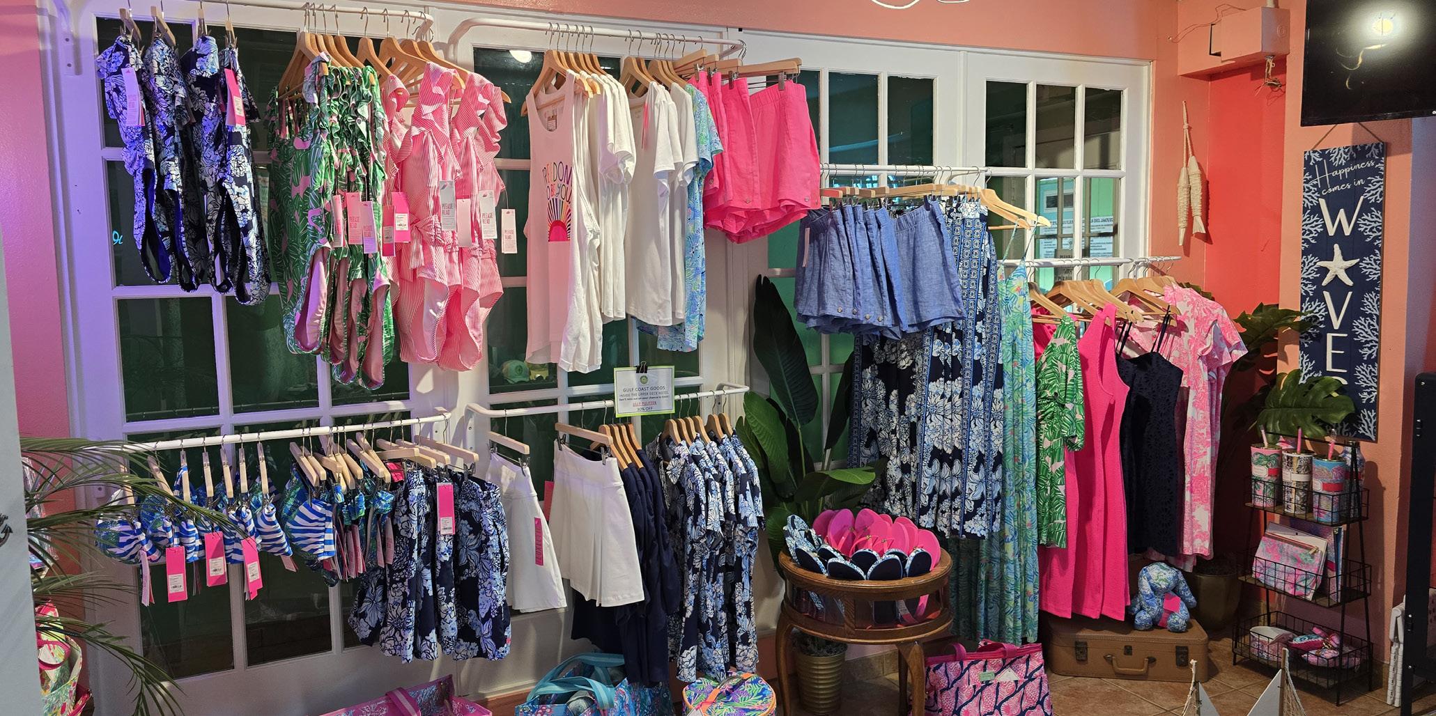 The store only features beach themed merchandise with everything being tropical in nature or use. Gulf Coast Goods is the only place in the area to find Lilly Pulitzer products with the closest other store being in Houston. They also carry the more fashionable lines of Maui Jim sunglasses.