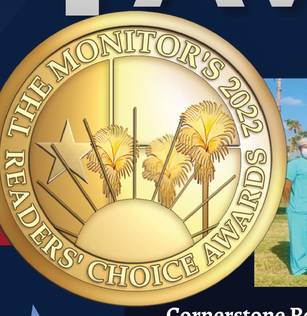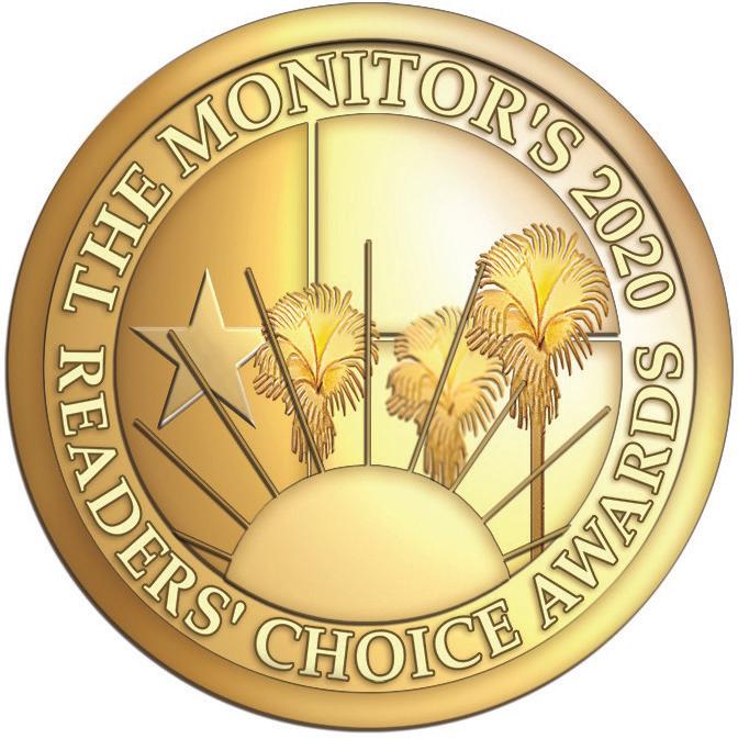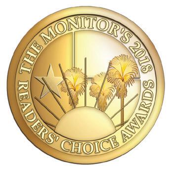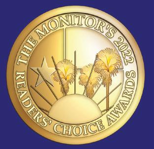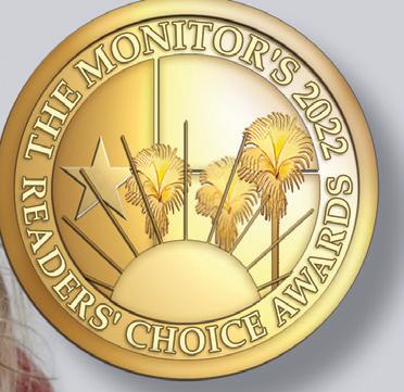 22 • The Monitor Readers’ Choice 2022 • Meet the Winners! The Monitor Readers’ Choice 2022 • Meet the Winners! • 23 OOVER Thank You for Voting Us as Your “Favorite Hearing Aid Center” John D. Druley Board Certified with over 30 years in hearing aid industry With over 80 years of experience and 95% patient satisfaction rating, you know Beltone is the name you can trust. Se Habla Español Harlingen 418 E. Tyler Suite 1A Harlingen, TX. 78550 (956) 423-4400 McAllen/Pharr 3906 N. Jackson Rd. (South of Nolana) (956) 632-0908 Weslaco 413 W. Pike, Suite C (Next to Allstate) (956) 647-5061 Check out website: beltonesouthtexas.com BELTONE RIGHT BESIDE YOU FOR 80 YEARS BRING THIS AD FOR 20% DISCOUNT 2022 Readers’ Choice Winner!