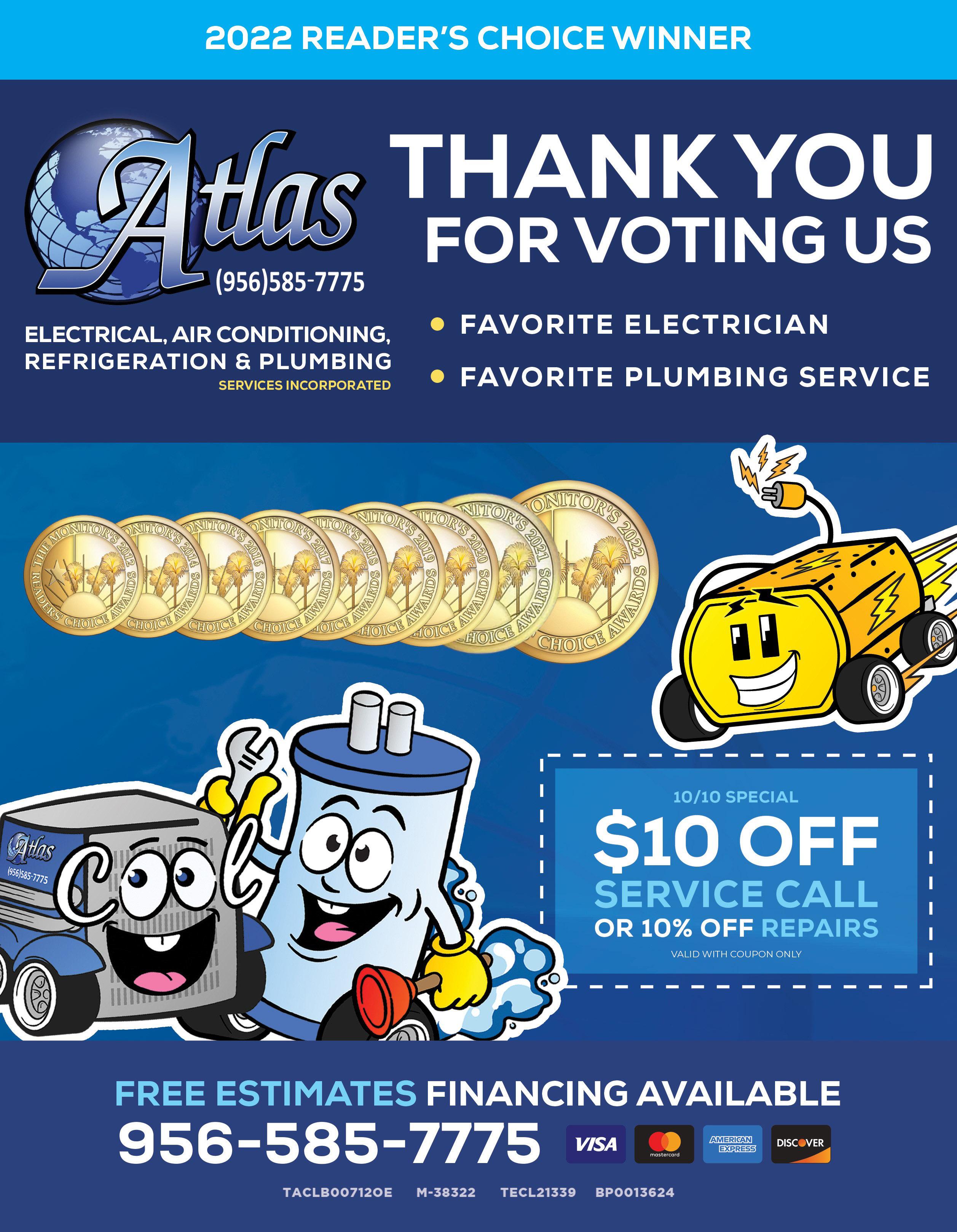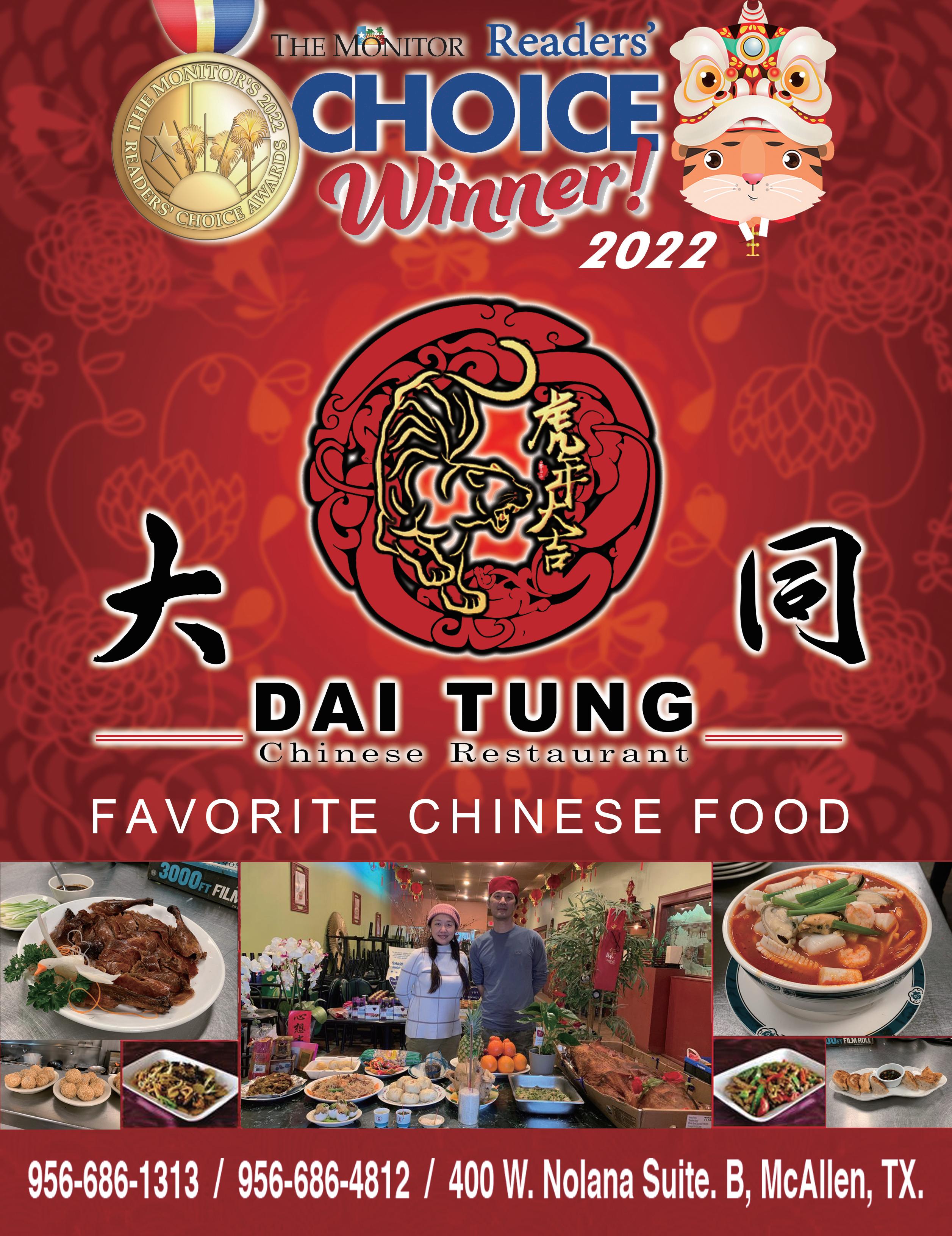42 • The Monitor Readers’ Choice 2022 • Meet the Winners! The Monitor Readers’ Choice 2022 • Meet the Winners! • 43 BUY 1 BUFFET GET 1 FREE Monday - Thursday expires 11-18-2022 Call 956-781-3840 www.risicaandsons.com 403 E. Interstate 2 San Juan, TX (Take Stewart Rd. Exit) • COMMERCIAL • RESIDENTIAL • AUTO GLASS The Glass Specialists of the Valley Thank you! for Voting for Us again “Your Favorite Glass Company” 2022 2002 2003 2005 2008 2009 2010 2011 2012 2013 2014 2015 2016 2017 2018 2020 TX-30215376 TX-30215932 "FAVORITE SUSHI" THANK YOU FOR CHOOSING US! F A V O R I T E C H I R O P R A C T O R " W e l o v e o u r c o m m u n i t y a n d w i l l c o n t i n u e t o p r o v i d e e x c e l l e n t q u a l i t y c a r e , b e s t c u s t o m e r s e r v i c e w i t h g r e a t t e a m w o r k . " d r t a g l e c h i r o . c o m 3 1 3 0 N . 2 3 r d S t r e e t M c A l l e n , T X , 7 8 5 0 1 4 9 4 9 S . J a c k s o n R o a d E d i n b u r g , T X , 7 8 5 3 9 C O N G R A T U L A T I O N S T H E B E S T C H O I C E F O R C H I R O P R A C T I C C A R E S A V I N G Y O U R S P I N E O N E A D J U S T M E N T A T A T I M E . 9 5 6 - 6 8 6 - 8 0 6 0 9 5 6 - 3 0 5 - 6 8 0 0