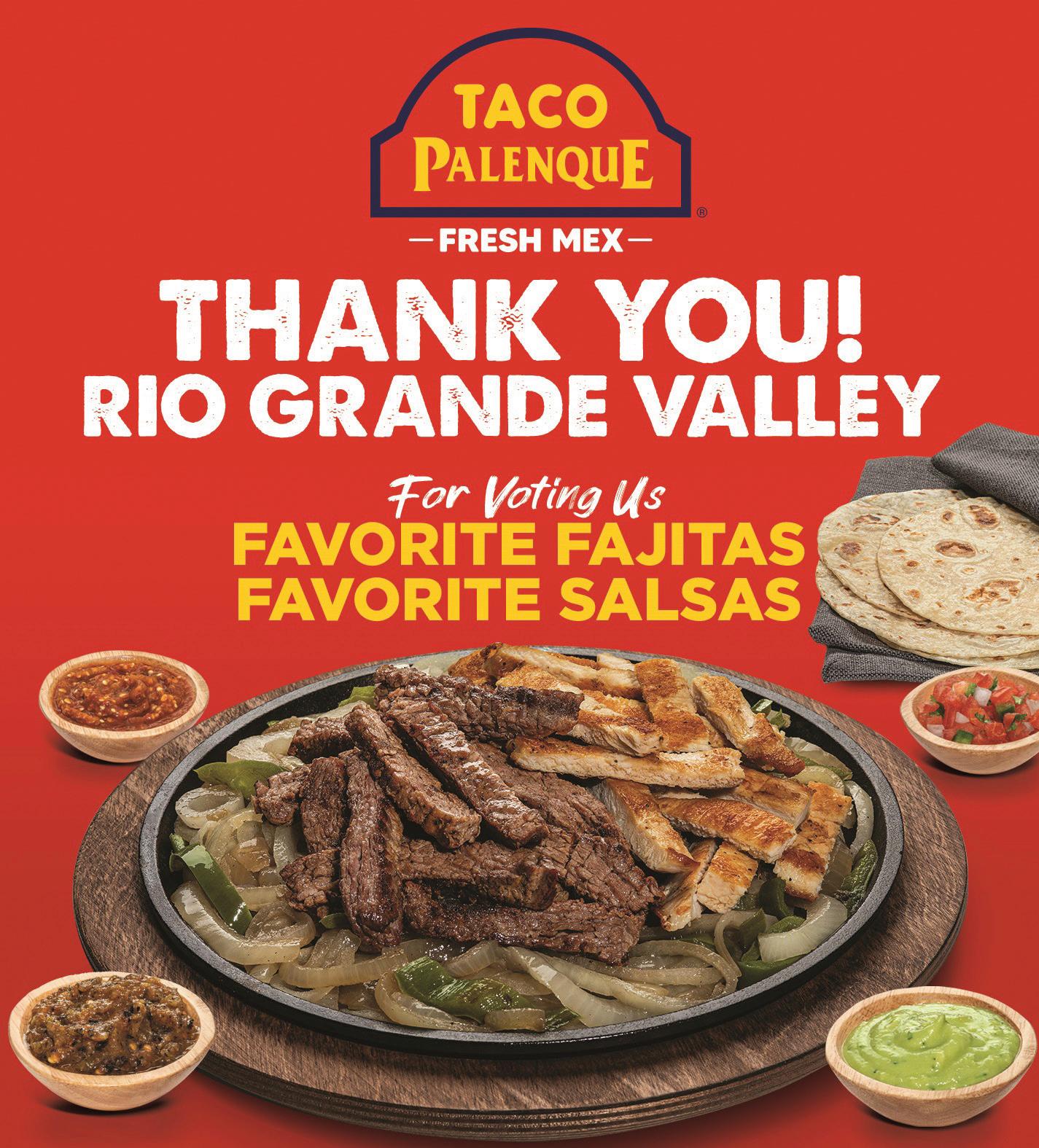 52 Hidalgo County’s Readers’ Choice Awards September 2023 myRGV.com THE MONITOR TX-30237599 Thank You! for Voting us your Favorite Seafood Restaurant La Jaiba is an authentic Mexican seafood grill serving the Rio Grande Valley. We’ve combined our Mexican seafood traditions with the Texas Gulf to create unique lunch and dinner dishes. Come by and Enjoy a delicious dining experience! McAllen - 400 W Nolana Ave #O (956) 618-5172 NOW OPEN! www.vivalajaiba.com