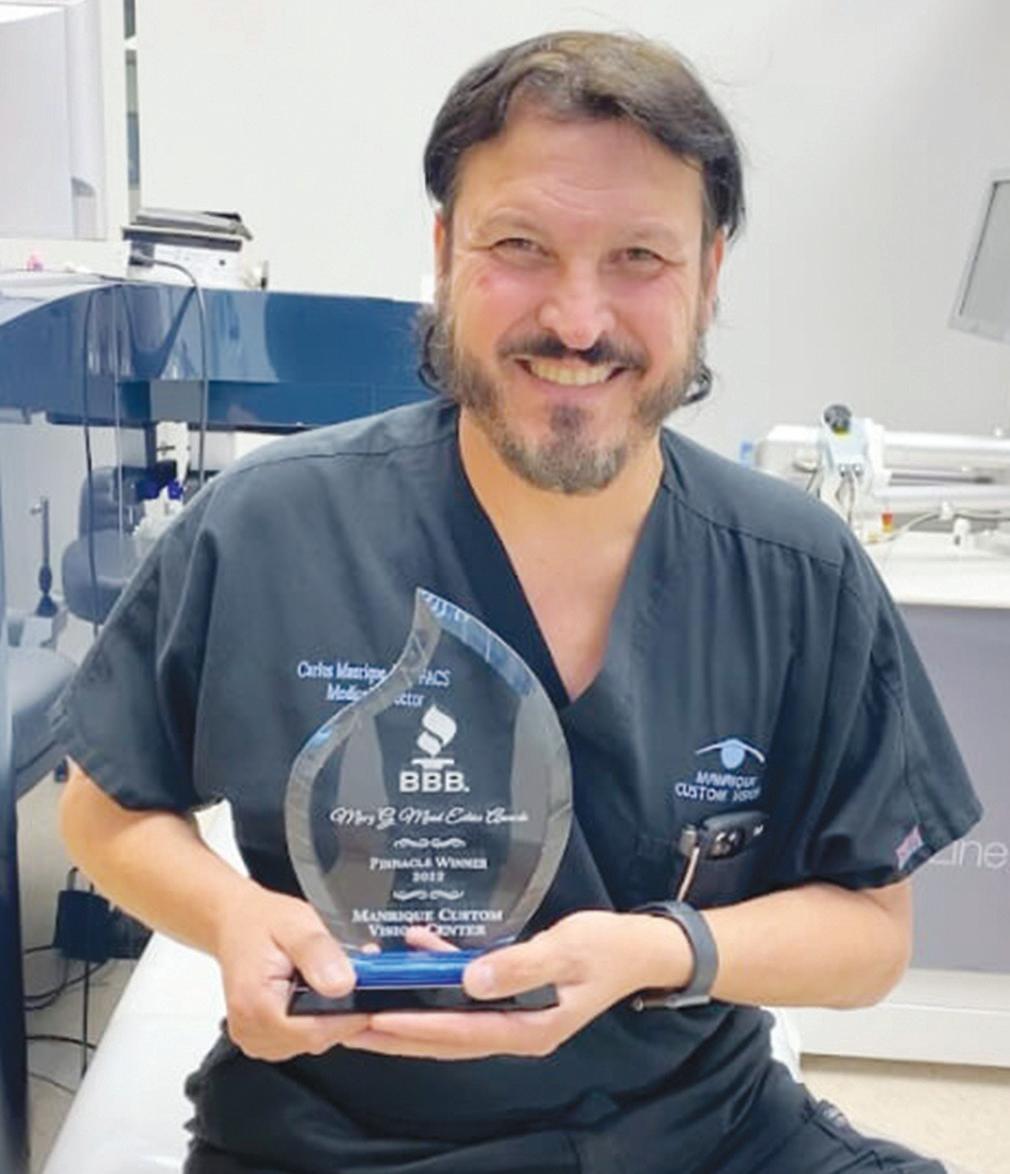 myRGV.com THE MONITOR September 2023 Hidalgo County’s Readers’ Choice Awards 49 Thank You For Choosing Us as Your “Favorite Lasik Surgeon and Favorite Eye Surgeon” As an experienced South Texas Lasik eye surgeon, Dr. Carlos Manrique de Lara recommends Blade-Free Z-Lasik for his Lasik patients. Blade and pain free Z-lasik can treat nearsightedness, farsightedness and astigmatism. Dr. Manrique is a Board-Certified Ophthalmologist and has performed over 65,000 Laser Vision Correction procedures. Manrique Custom Vision is a state-of-the-art Z-Lasik facility dedicated to providing a high-quality lasik eye surgery experience that meets your comfort, safety and laser vision correction needs. Let us help you enjoy freedom from glasses and contacts. Come and join the Manrique Family. 2518 West Trenton Rd. Edinburg | 956-661-9000 | www.manriqueeye.com Serving the Valley since 1999! Your Eye Surgeon for Lasik Eye Surgery in McAllen, Harlingen, Laredo, Corpus Christi, & San Antonio Dr. Carlos Manrique de Lara Dr. Manrique is the only Z-Lasik Trainer in the area!
