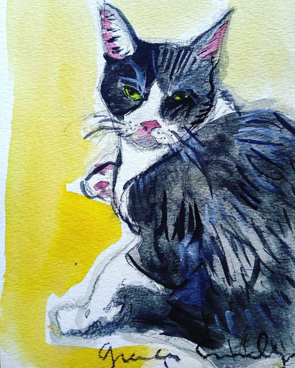 34 GRAÇA CRAIDY Brasil El gato Vivaldi Dibujo, acuarela 21 x14 cm - 2020