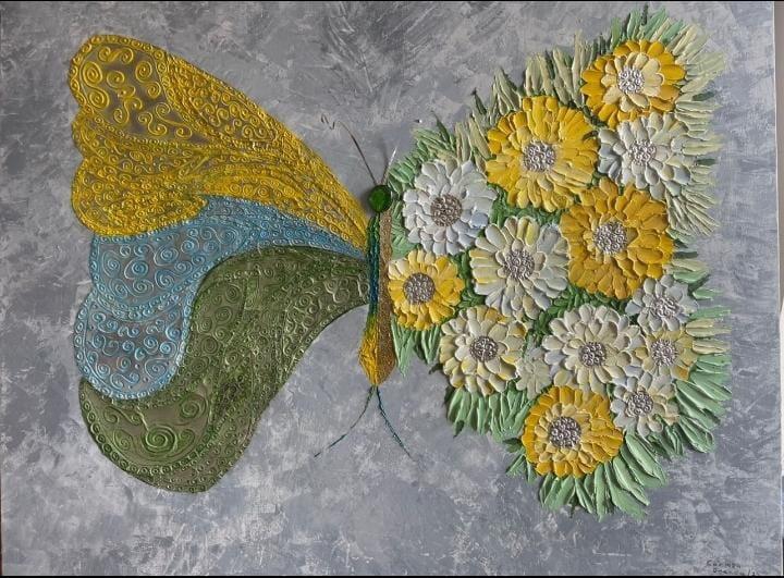 Ecuador Mariposa en Flor Mixta s/ lienzo 80 x 100 cm - 2022