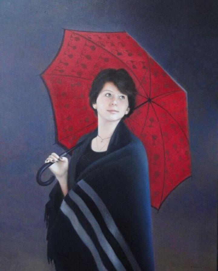 PAÚL CALDERÓN Ecuador Mujer con paraguas Óleo s/lienzo 80 x 100 cm - 2021