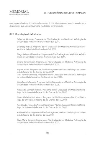 3.2.1 Orientação de Mestrado Rafael de Almeida. Programa de Pós-Graduação em Medicina: Nefrologia da Universidade Federal do Rio Grande do Sul, 2011. Daianady da Silva. Programa de Pós-Graduação em Medicina: Nefrologia da Universidade Federal do Rio Grande do Sul, 2010. Diego da Rosa Miltersteiner. Programa de Pós-Graduação em Medicina: Nefrologia da Universidade Federal do Rio Grande do Sul, 2011. Daiana Benck Porsch. Programa de Pós-Graduação em Medicina: Nefrologia da Universidade Federal do Rio Grande do Sul, 2007. Vagner Milani. Programa de Pós-Graduação em Medicina: Nefrologia da Universidade Federal do Rio Grande do Sul, 2007. Geni Portela Gamborgi. Programa de Pós-Graduação em Medicina: Nefrologia da Universidade Federal do Rio Grande do Sul, 2006. Liana Bertolin Rossato. Programa de Pós-Graduação em Medicina: Nefrologia da Universidade Federal do Rio Grande do Sul, 2006. Alessandra Campani Pizzato. Programa de Pós-Graduação em Medicina: Nefrologia da Universidade Federal do Rio Grande do Sul, 2002. Cassia Maria Frediani Morsch. Programa de Pós-Graduação em Medicina: Nefrologia da Universidade Federal do Rio Grande do Sul, 2002. Ane Cláudia Fernandes Nunes. Programa de Pós-Graduação em Medicina: Nefrologia da Universidade Federal do Rio Grande do Sul, 2002. Adriana Klafke. Programa de Pós-Graduação em Medicina: Nefrologia da Universidade Federal do Rio Grande do Sul, 2001. Silvia Maria Dorigoni. Programa de Pós-Graduação em Medicina: Nefrologia da Universidade Federal do Rio Grande do Sul, 2001.
