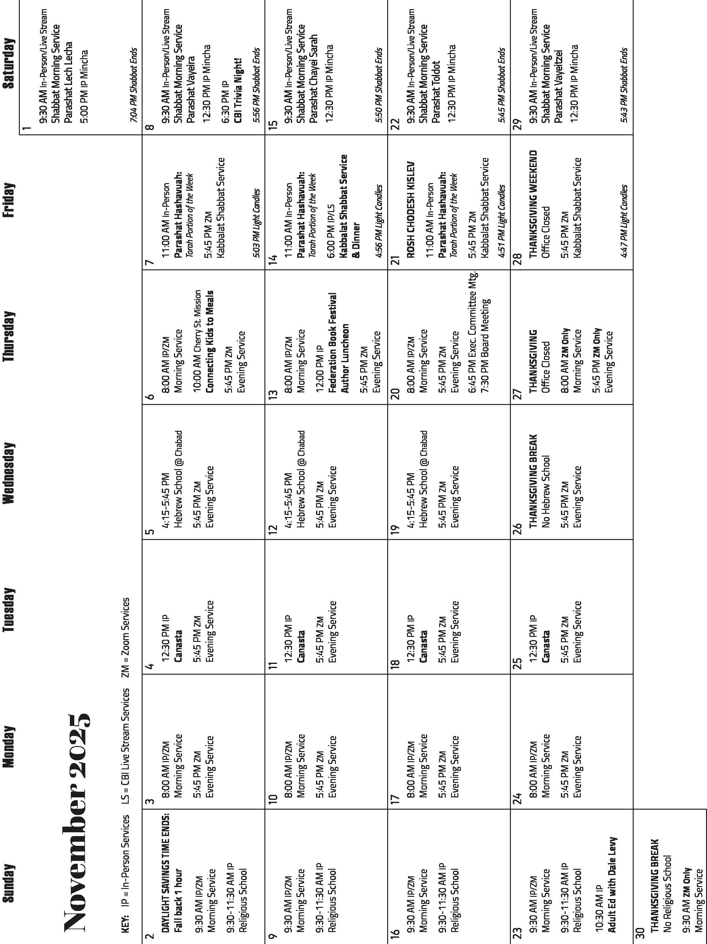 Due to the ending of Daylight Savings Time, beginning on November 8th, Shabbat Mincha services will move back to 12:30 PM right after Kiddush.