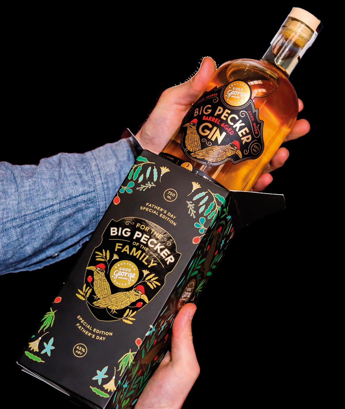 When Good George Brewing set out to launch their limitededition Big Pecker Barrel Aged Gin for Father’s Day, they wanted packaging that was as bold and distinctive as the product itself. Crafted with 15 botanicals – including Mosaic and Galaxy IPA hops – and aged in red wine and French oak barrels, the gin was a celebration of flavour and craftsmanship.