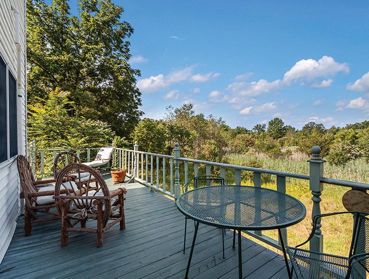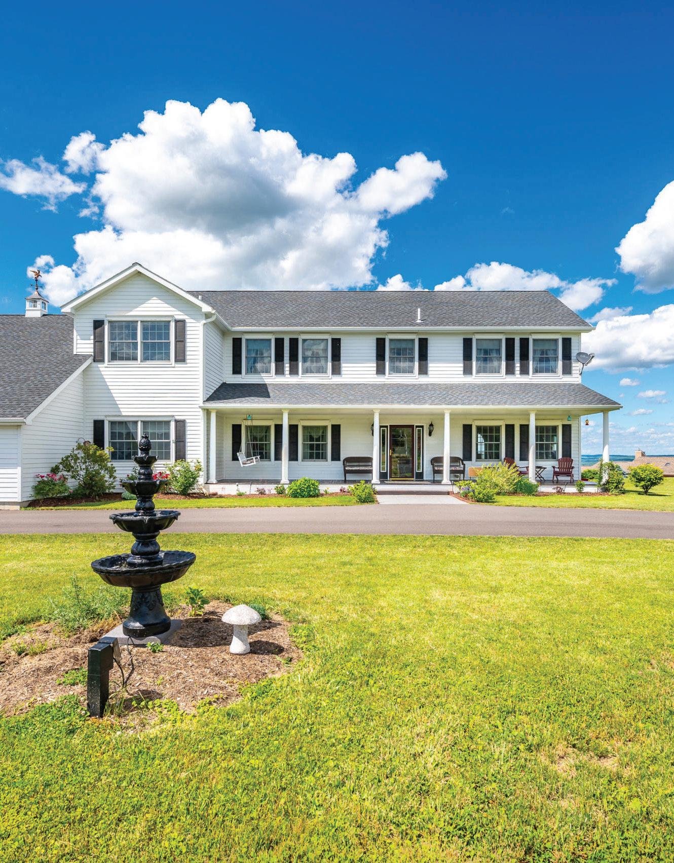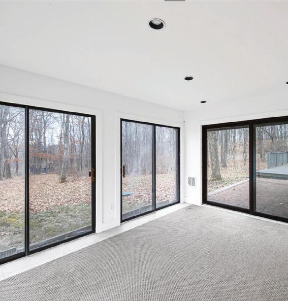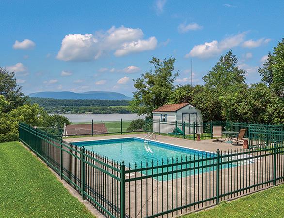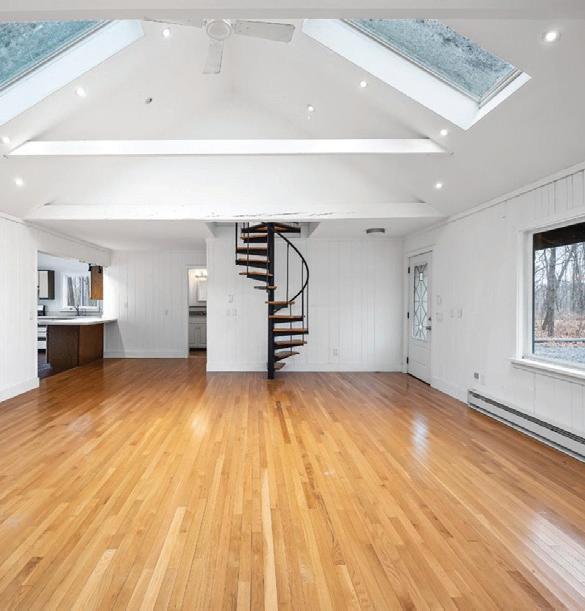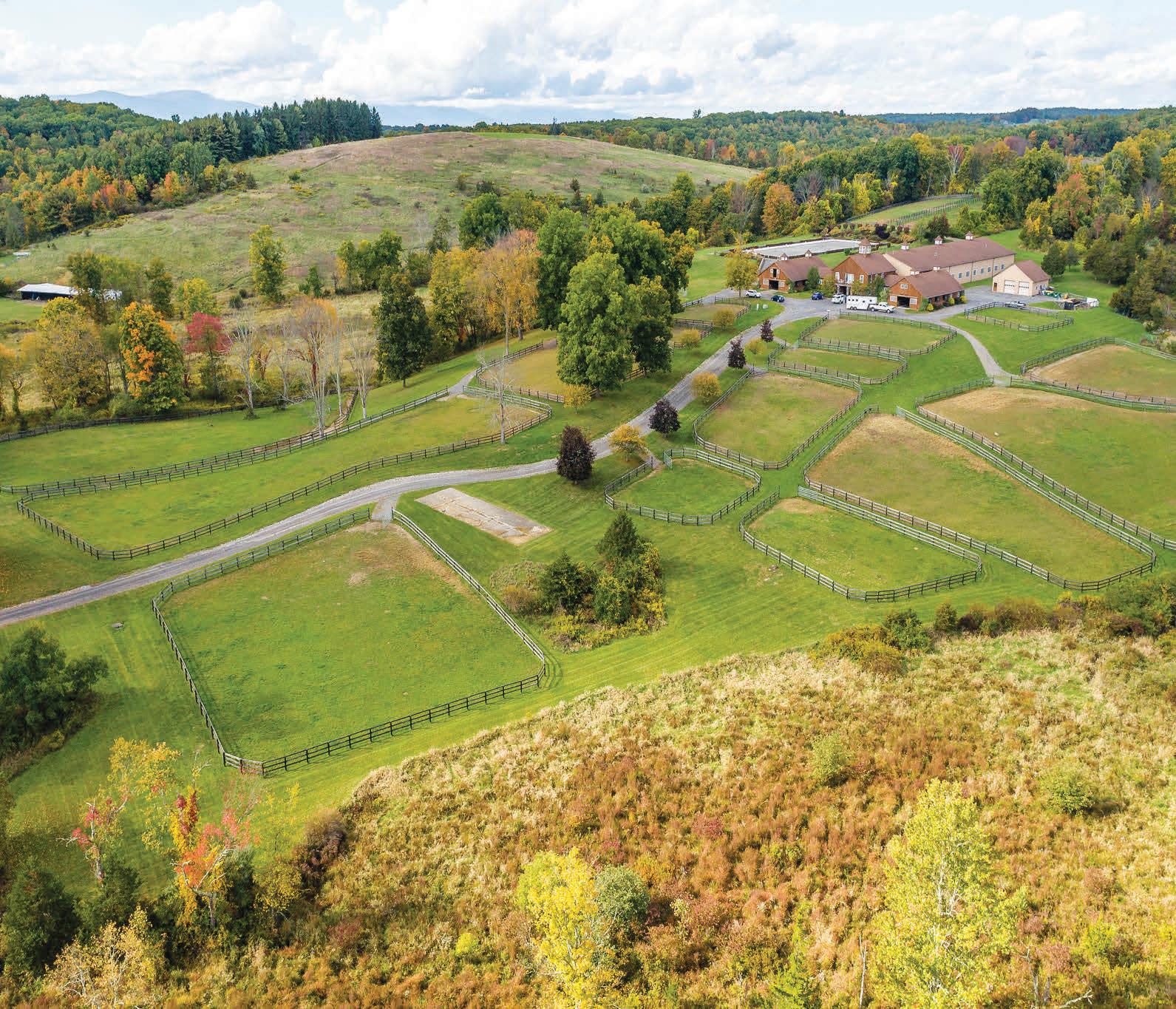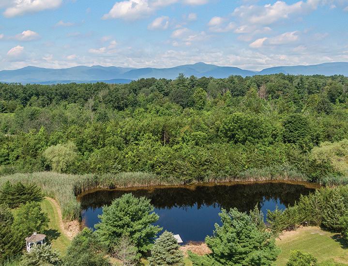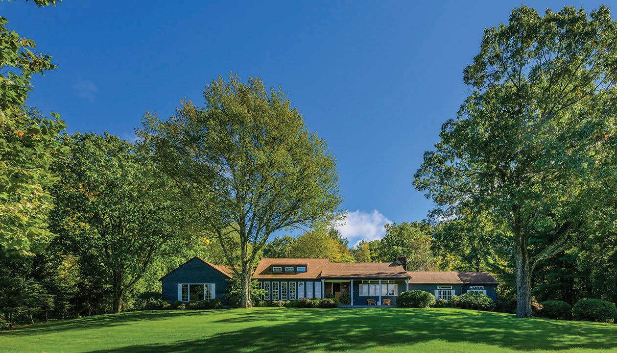 Spacious 7 bedroom, 6 bathroom, stone-andwood home surrounded by artfully designed stonework and lush landscaping. Great room with fireplace, chef’s kitchen, and 4 season sun-room. Grotto-like swimming pool with multi-level terraces and outdoor kitchen. Past the stocked pond is the horse stable with a fenced-in pasture, and a 3,600 square foot heated hangar. 2,200 ft of lake frontage, trails throughout the wooded hillside, and a private island. COPAKE, NY $7,950,000