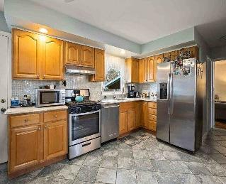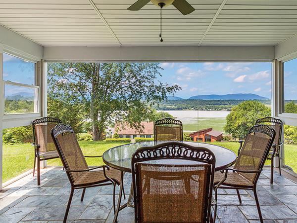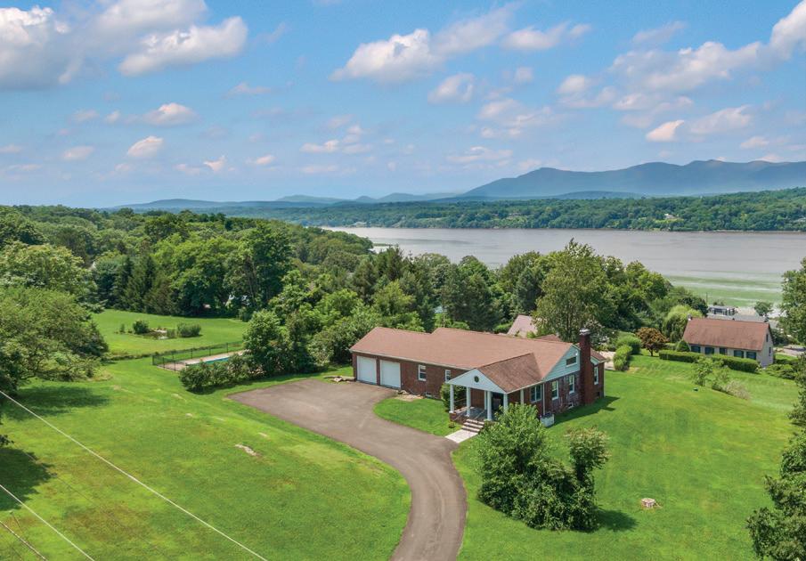 Germantown ranch with Hudson River & Catskill Mountain views. Located on a quiet dead-end road, this three-four bedroom/ three bath home features an open living/dining room which takes full advantage of the wonderful views, cathedral ceiling and working replace, kitchen with informal dining area, sunroom, lower level with recreation room, den/o ce and bath, attached heated garage, central air conditioning, hardwood oors, stained glass windows, and whole house generator. Inground pool. Desirable residential area.