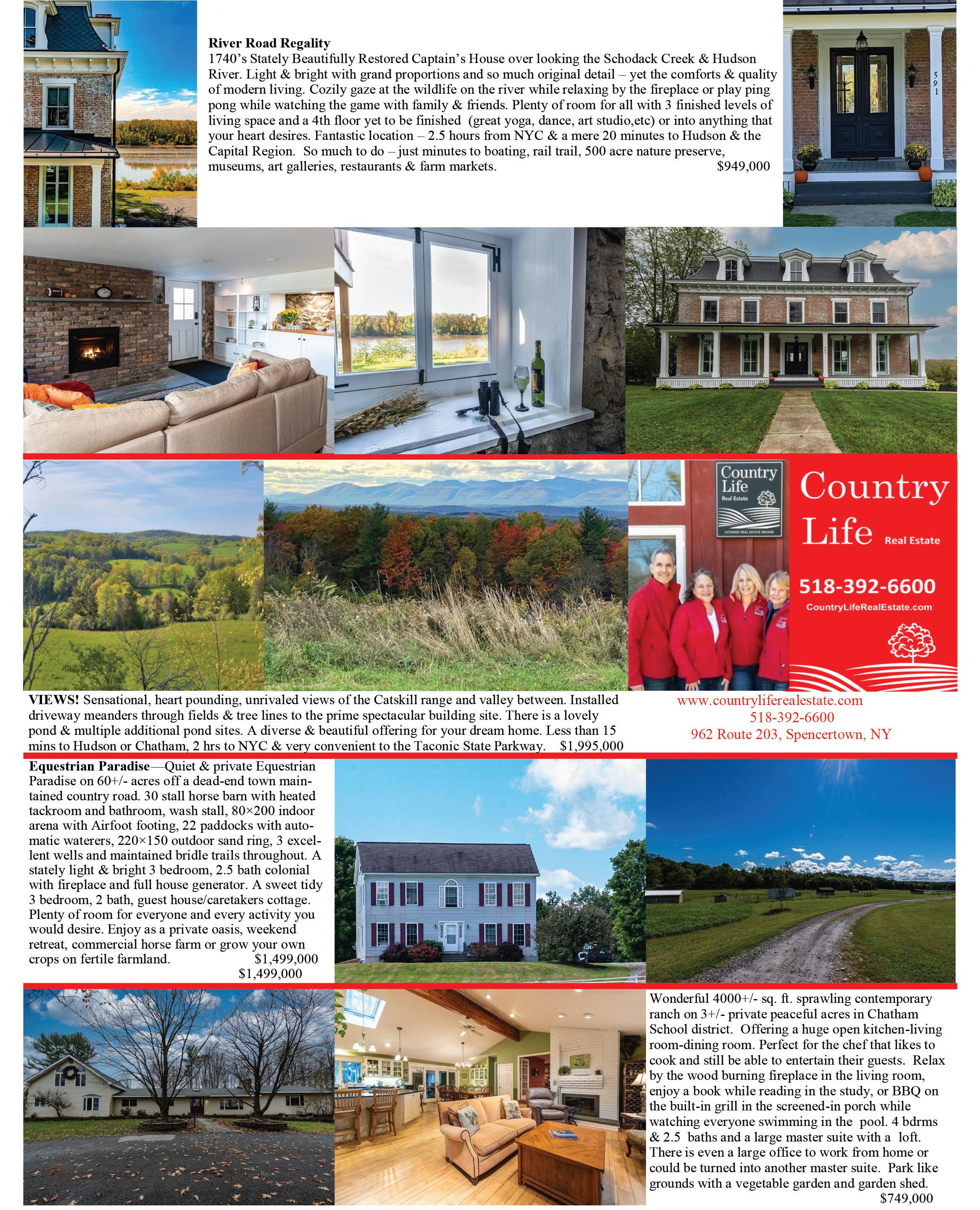 Durham. 360º views! Colonial with 6 beds, 5 baths, in-law suite. 3-car garage. 4 acres. Close to ski resorts. $1.49 Mil. Call Paul Barret, 518-755-3296 or Chris Jones, 646-256-4797.