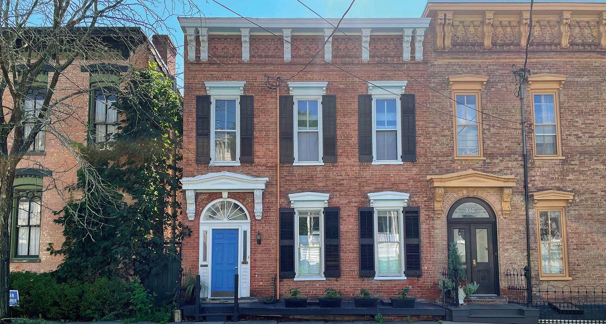 Hudson. 1860 Italianate, brick townhouse on a quiet, tree-lined street. Hudson River and Catskill views. 3 bedrooms. 3 baths. Many period details remain intact including multiple fireplaces, front door, bannister, baseboards and window/door trim. Sunny, high ceilinged spaces. Covered back porch. The walkout basement was formerly an apartment and is separately metered. Fenced, south facing garden with two off-street parking spaces. Short walk to the train station, and just two blocks to Warren Street. 2 hours from NYC. $749,000