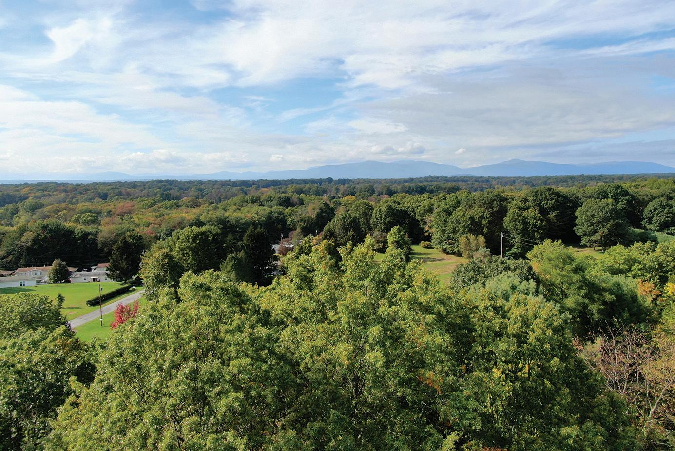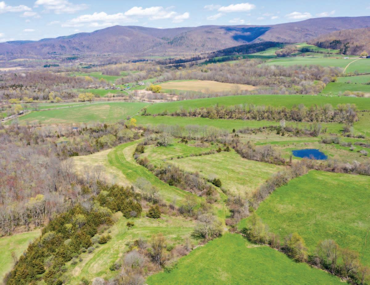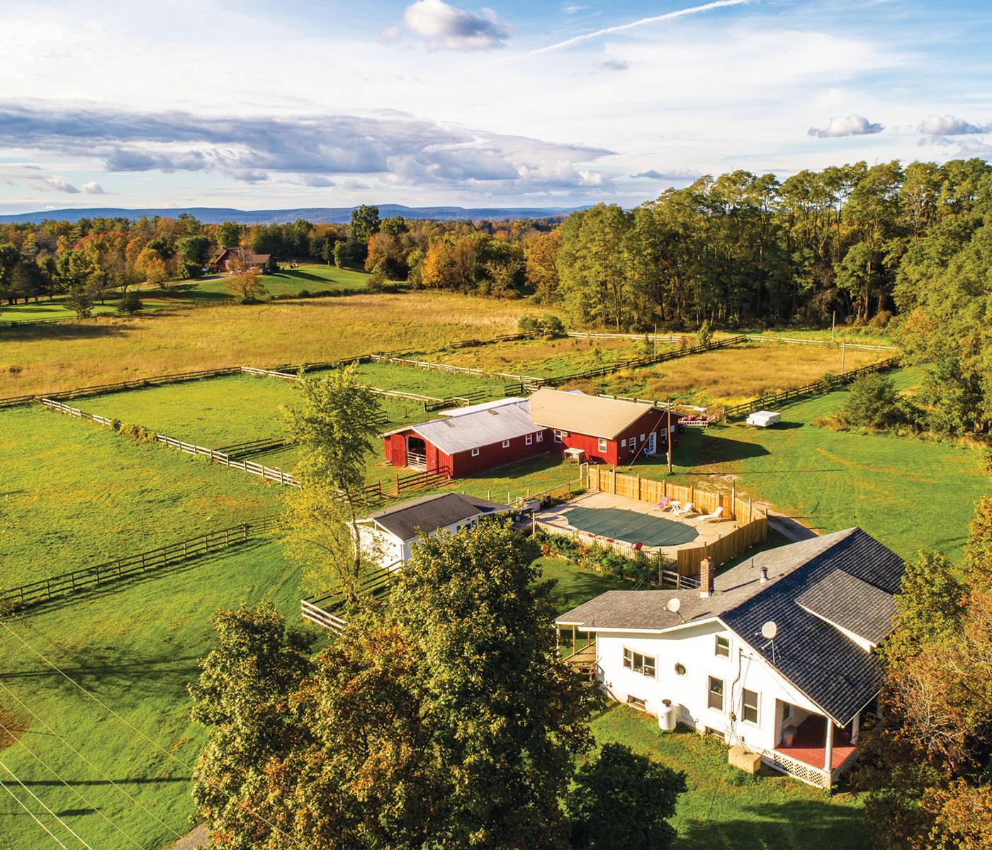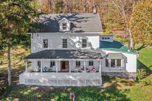 Elizaville Dramatic panoramic views from this secluded Contemporary on 108 acres. e views include the full range of the Catskill Mountains to the west, the Taconic Range and Stissing Mountain to the east and the Hudson Valley to the south. e custom-built home features 3,700 sq of living area with a cathedral-ceilinged living room and a tile ceilinged dining room both with amazing views, a spacious kitchen with an informal dining area and direct access to the balcony, primary bedroom suite with two walk-in closets, and a large bath. e ground oor includes 2 bedrooms, a den, full bath and a spa room with hot tub and shower. e majority of the rooms have cherry or maple paneling, all the closets are cedar lined, oors are hickory wide-board or ceramic tile, with central air throughout. e improvements also include 2 attached garages and a barn. e land features a nice size pond and a number of elds perfect for farming.