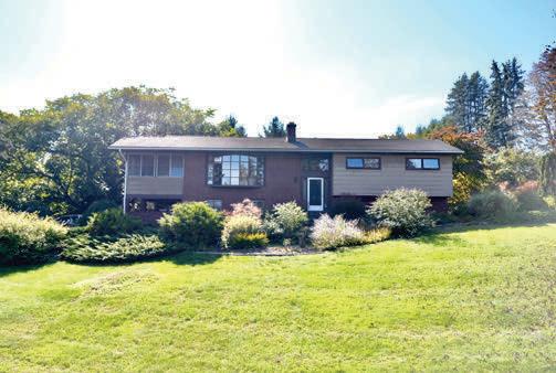 Country Home on 3.4 Acres Nicely set back from the road and within walking distance to the hamlet, the original one-story 1970 house features a sun- lled living room with a working replace, spacious eat-in kitchen, formal dining room, family room, master bedroom suite, two guest bedrooms, and a full bath. In 2018, an 875 square foot addition was built. Currently, a master bedroom suite with a beautiful bath, huge walk-in closet, and deck, this area has many other possible uses. e basement sports a retro-style rec room with a bar & pool table as well as a laundry room. Central air throughout. Oversized 2 car garage with workshop. Wonderful large front and back decks. Private backyard.