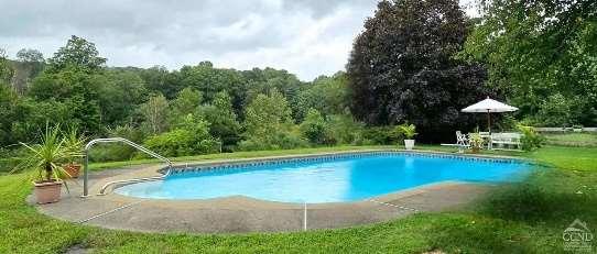 Cover Property. Kinderhook. Nestled on a peaceful country road, this beautifully maintained 4-bedroom home offers light-filled living spaces and over 5 acres of land. The open-concept kitchen and dining area welcome you in, leading to a serene glass sunroom that overlooks a sparkling saltwater in-ground pool—perfect for relaxing or entertaining. First-floor primary suite, 3 more beds upstairs, finished basement, attached two-car garage, full-house generator, and central A/C. $899,000. Call Janet Kain, 917-709-8724.