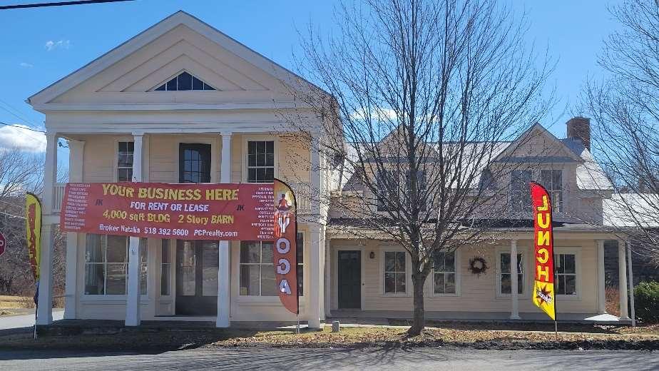 4,000 sqft Commercial Space – Open Retail 1st Floor – Offices 2nd Floor Plus Massive Two-Story Post & Beam Barn – Excellent, Easy Location for Café, Restaurant, Wedding Venues, Dr/Dentist, Yoga Center Priced Per Space Needed – Speak with Natalia 518 392 5600